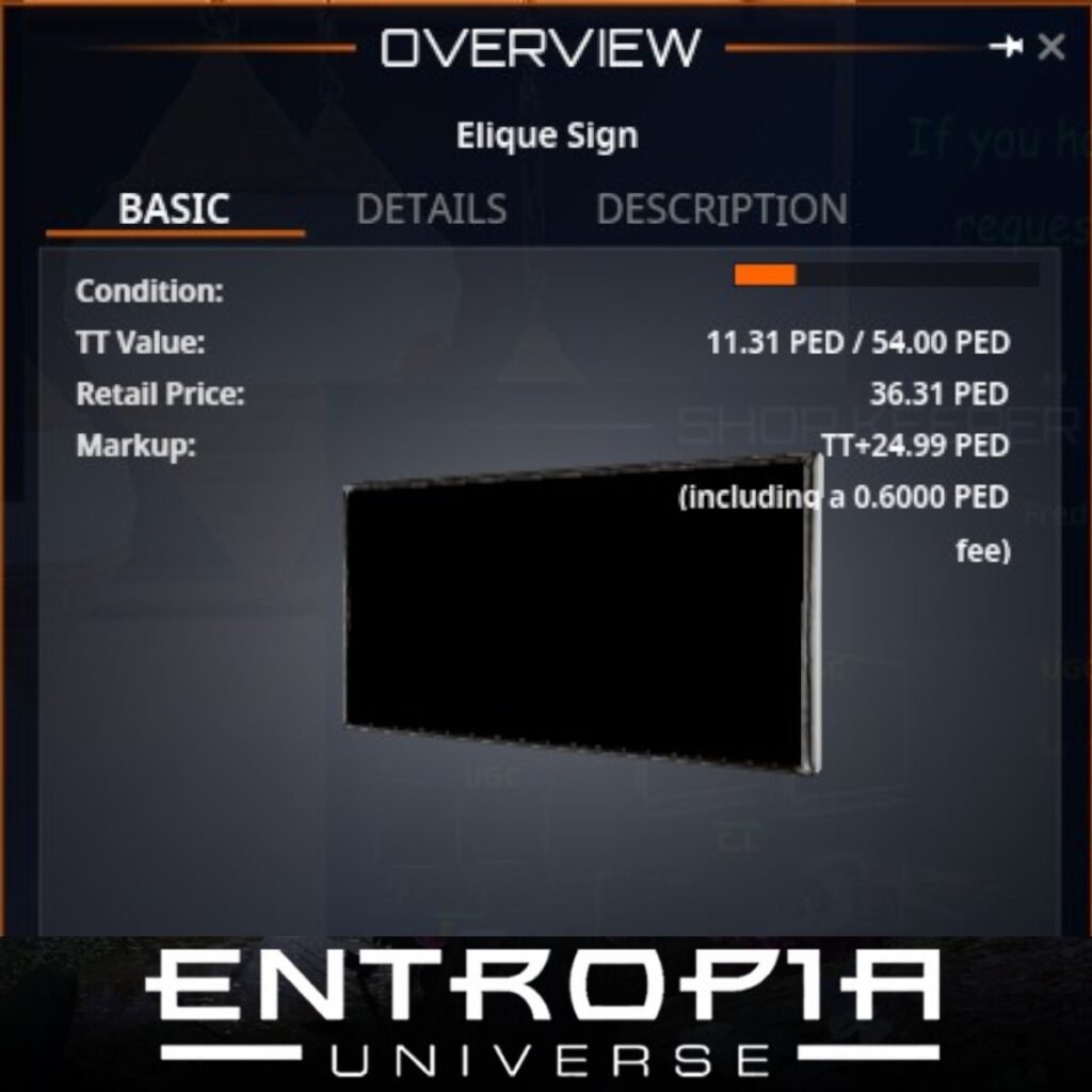 ขาย Elique Sign ในเกม Entropia Universe