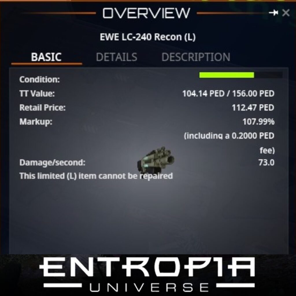EWE LC-240 Recon (L) เป็นอาวุธที่มีความน่าสนใจในเกม Entropia Universe ซึ่งออกแบบมาเพื่อให้ผู้เล่นสามารถต่อสู้ได้อย่างมีประสิทธิภาพ