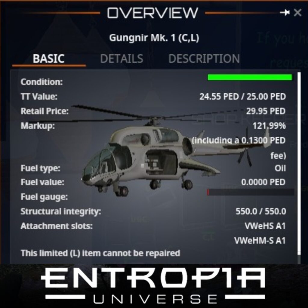 ขาย Gungnir Mk. 1 (C,L) ในเกม Entropia Universe