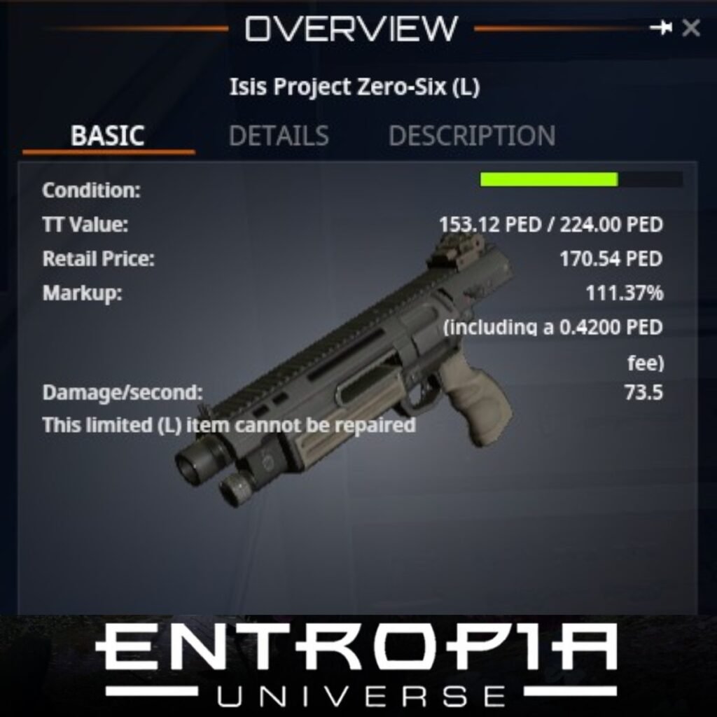 ขาย Isis Project Zero-Six (L) ในเกม Entropia Universe