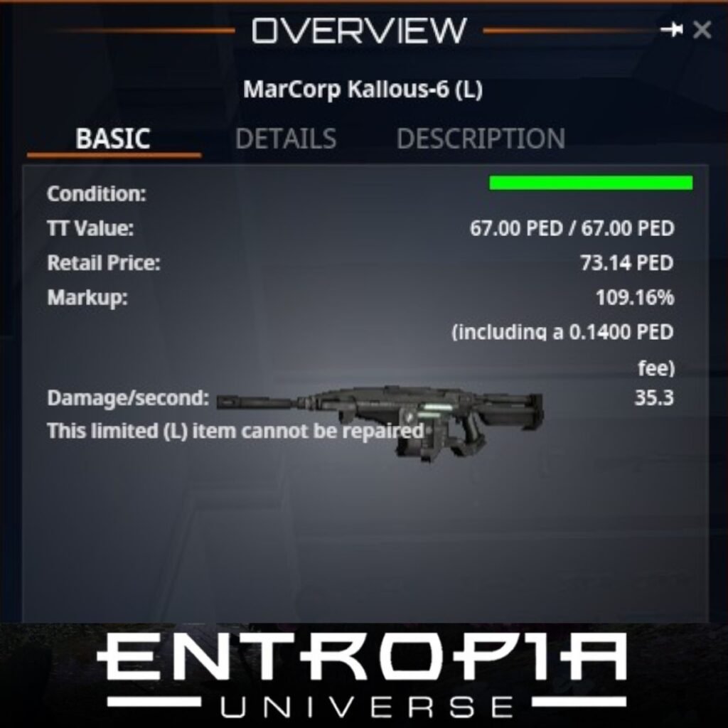 MarCorp Kallous-5 (L) เป็นอาวุธประเภทปืนในเกม Entropia Universe ที่มีคุณสมบัติที่น่าสนใจ ดังนี้: