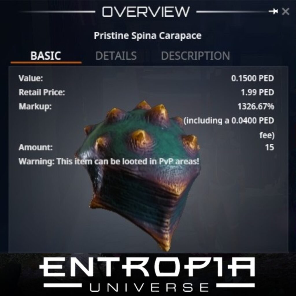 ขาย Pristine Spina Carapace ในเกม Entropia Universe