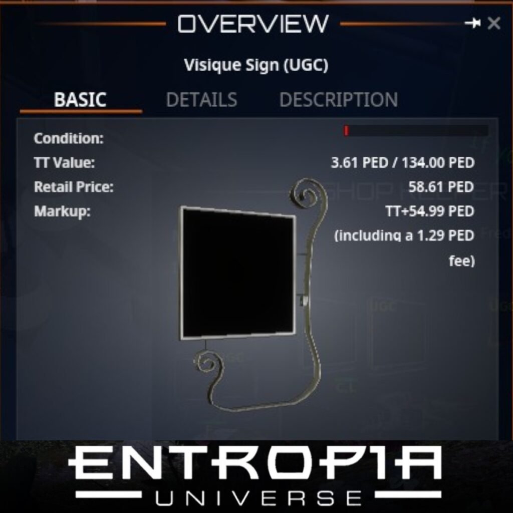 ขาย Visique Sign (UGC) ในเกม Entropia Universe