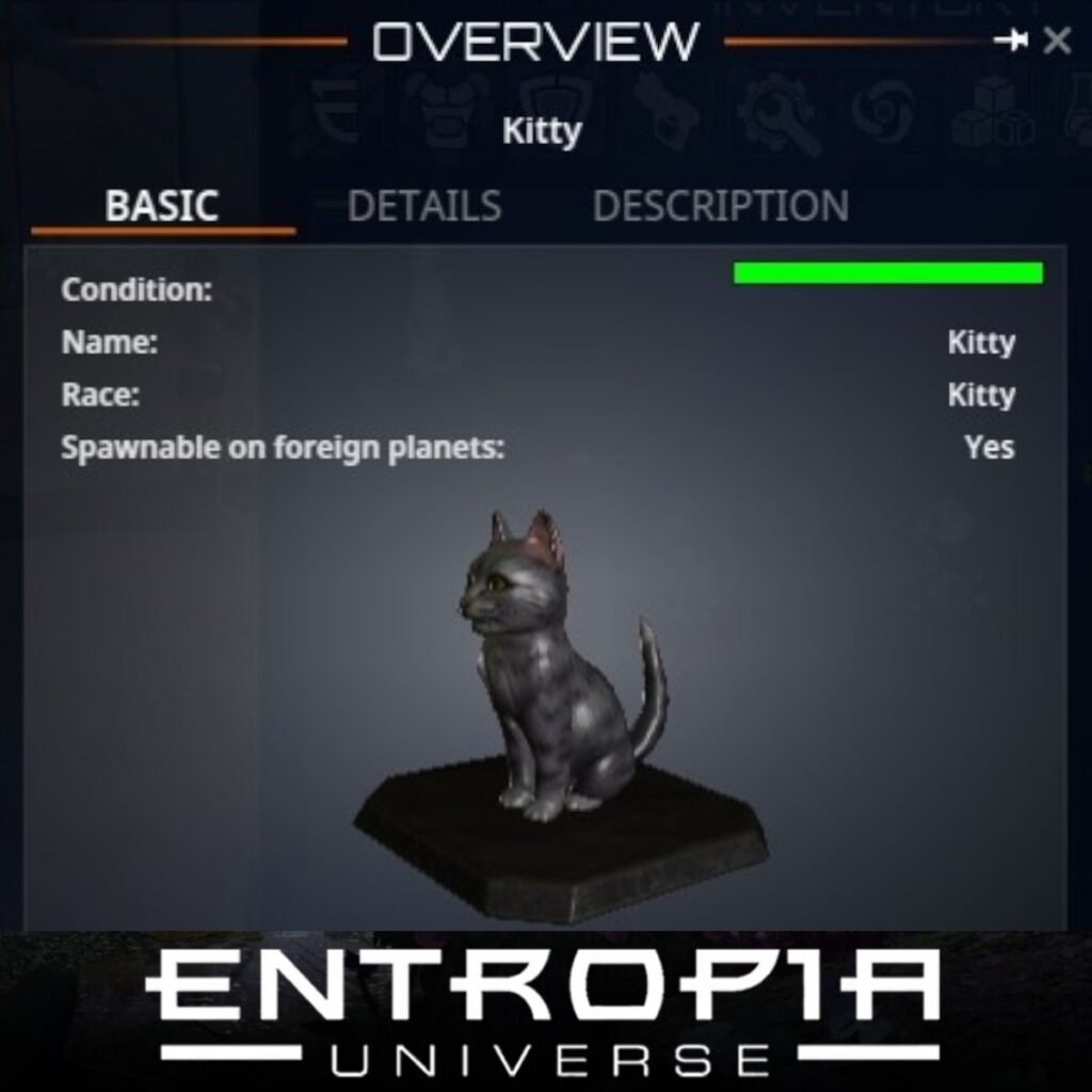 สัตว์เลี้ยง Kitty ในเกม Entropia Universe เป็นสัตว์เลี้ยงที่น่ารักและมีความสามารถเฉพาะตัว