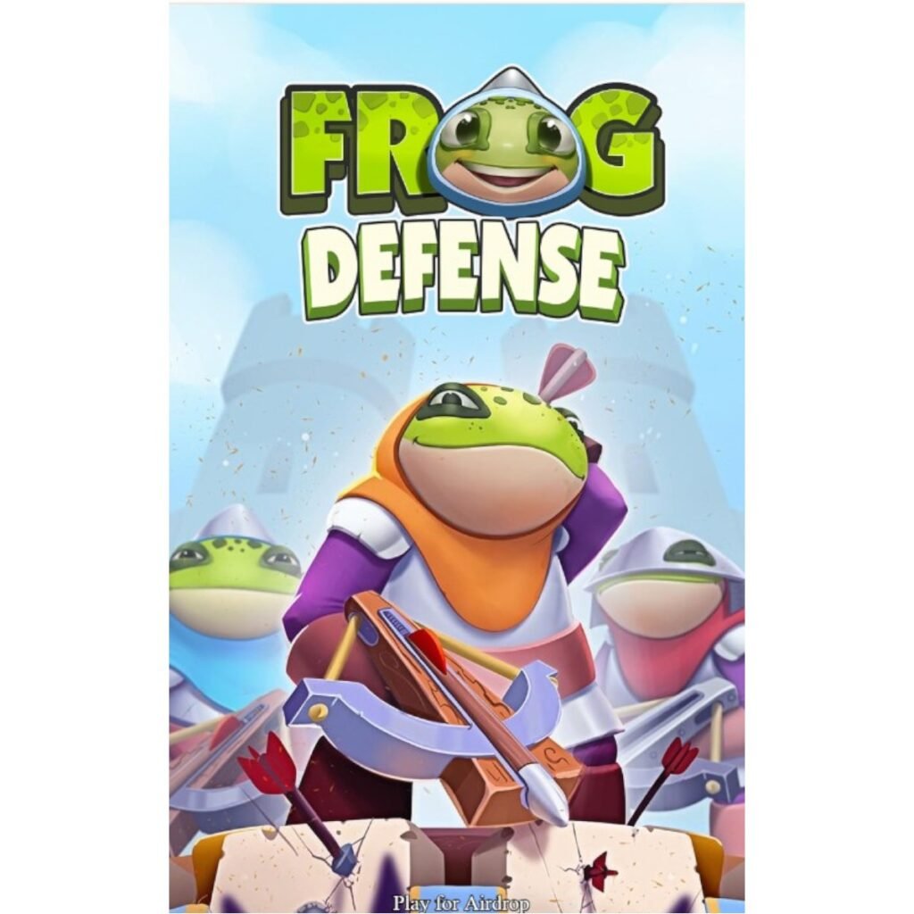 เกมในภาพนี้คือ Frog Defense ซึ่งเป็นเกมแนว Tower Defense (TD) ผสมระบบ Play-to-Earn (P2E) หรือ Airdrop Rewards โดยใช้ตัวละครหลักเป็น “กบอัศวิน” ที่คอยป้องกันปราสาทจากศัตรู